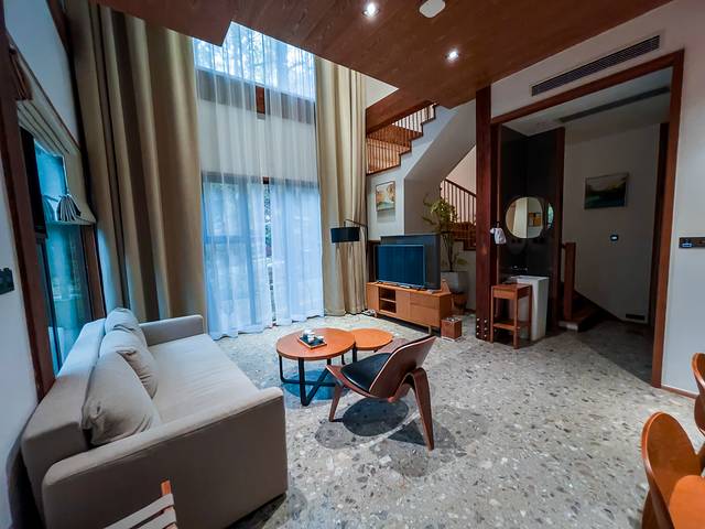 酒店拥有36栋非常有设计感的森林别墅,错落有致的分布在茂密的山林中,彰显已经,拥有53间客房,以松月、花径、桃源、禅溪、紫薇命名,充满自然诗意与中式禅意。