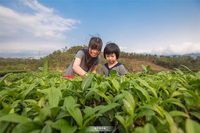 相比城市拥堵的交通、令人眼花缭乱的电子产品,在孩子眼中宽阔的乡村天地瞬间变得有趣多了。满眼的青翠,漫山的茶香,带上小朋友置身于幽香茶海之中,恰似一幅世外桃源田园画。