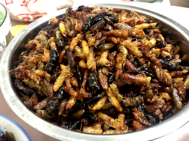 吃了小龙虾和炒蚕蛹,人均30\人,直到最后我也没敢对蚕蛹下嘴,据说咸咸脆脆很好吃。