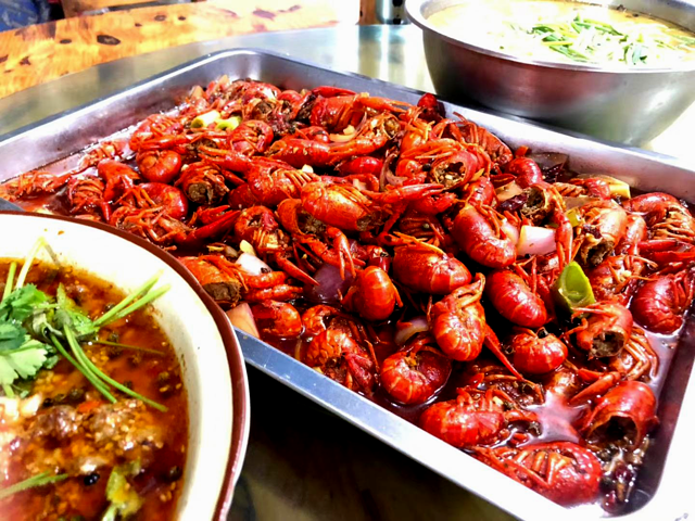 晚上跟朋友打麻将打太晚,睡到下午起床两个人出门去吃了宜宾必吃的燃面,然后两个人慢悠悠的开车到南溪去朋友家吃小龙虾。