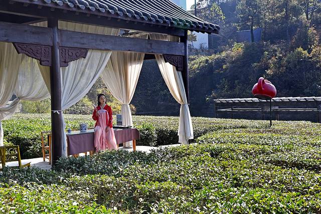 清凉寨有茶园300多亩,为展示博大精深的茶文化,清凉寨景区开发了“四茶”景观,即茶园、茶塘、茶楼、茶廊。这里是举办茶文化艺术节的地方,游人能亲自体验采茶,参观茶叶加工制作的全过程。还有茶艺师现场茶艺表演,品青茶,感受大自然的味道。茶园旁边新建了佛手观景台,微笑牧羊场,和可爱的小羊亲密接触,还可以亲手给羊喂草,体验愉快的互动。