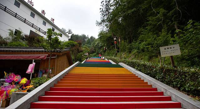 木兰天池索道站下的台阶最近成了一处网红打卡地,因为涂上了鲜艳的色彩,被称为“彩虹阶梯”,游客来到这里摆出各种造型拍照,画面亮丽抢眼。忠孝园前大片的格桑花海也是拍照的好地方。区间车站旁边,还有老奶奶卖灵芝煮鸡蛋,山里的灵芝,家养的鸡,真材实料,10块钱买6个。