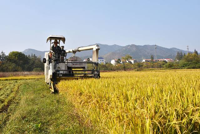 在水稻生产田,收割机、拖拉机正在穿梭忙碌着,村里的稻田从插秧到收割已经实现了全程机械化,农业机械的推广使用大大提高了劳动效率,胡兴咀的农民彻底告别了面朝黄土背朝天的辛苦劳作,负担减轻了,收入提高了,开启了新生活。一条条,一块块稻田很快就收割完毕,金黄的稻谷从收割机出来,装满拖拉机的货仓。收获的喜悦洋溢在脸上,丰收的图景铺满在田野。
