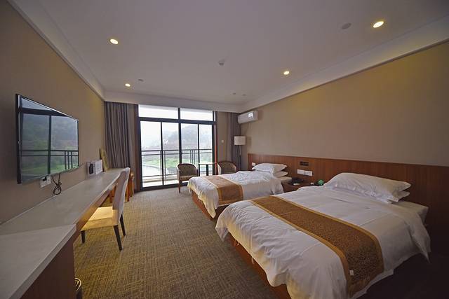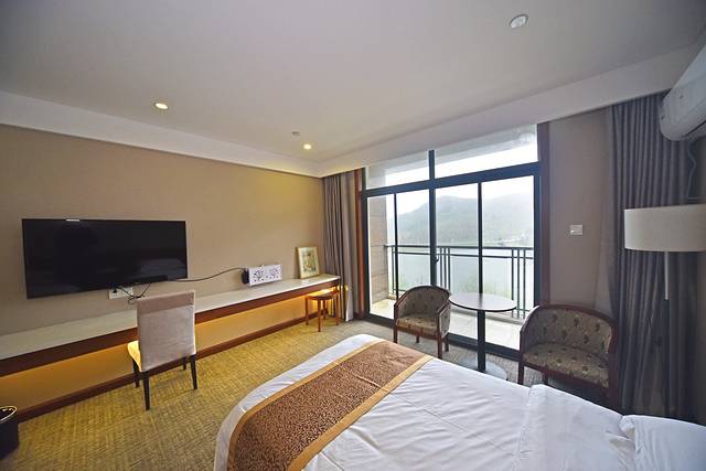 豪华大床房、华丽阳台房、半山庭院大床房、半山庭院双床房、家庭套房……樾和·林泉有多种房型可选。每个房间都有一个雅致的名字。房间窗外、阳台景观超棒,置身山林之中,呼吸自然气息。房间设施齐全,还有智能音箱,热水供应方便,床硬度适中,体感舒适,尤其是晚上特别安静。