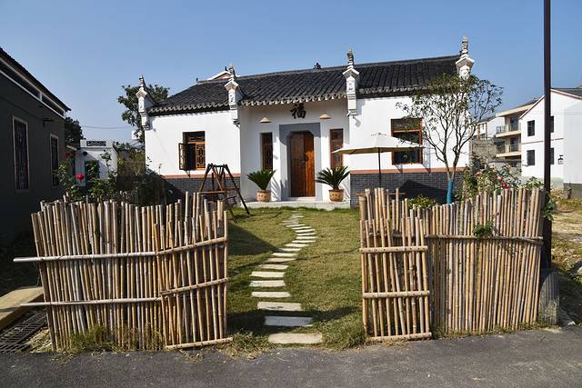 借助农机优势,胡兴咀成功申报了美丽乡村“农机小镇”项目。经过改造,村子里水变清了,路变宽了,路灯亮起来了,上下水通了,房前屋后干净了,文化广场建起来了。村里把闲置房屋利用起来开发民宿,竹篱笆围成的小院子,青砖黛瓦白墙的徽派风格小房子,草坪上铺设着石板小路。秋千和长椅舒适安逸,明媚的早晨,慵懒的午后,坐下来晒太阳,享受田园慢生活。