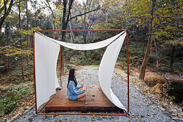 樾和·林泉是一座深藏于森林间的民宿,周围没有村落,也没有人口聚居,走进山林,仿佛远离了世间的繁华喧嚣,走进隐世清静之地,和大自然亲密相拥。民宿充分沉浸于自然山水,呼吸自然的空气,聆听自然的声音,于山野间之回归生活的本真。