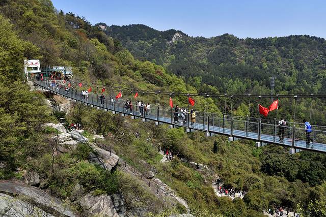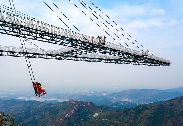 云雾山有一座创造了吉尼斯世界纪录的玻璃观景台,海拔709米的山顶,是武汉海拔最高的地方,因此被称为武汉之巅。景观台垂直高度达500米,相当于166层楼高度,堪称云端观景台,走在透明的玻璃上,脚下万丈深谷,绝对刺激。