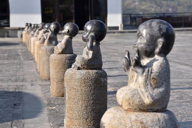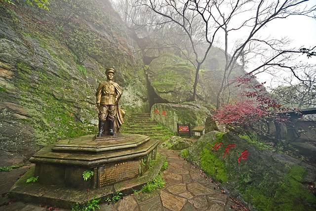 云雾山有恐龙谷、蜡像馆、竹林寺等众多景点,山下的泥人王村是非遗项目黄陂泥塑的传承地。黄陂泥塑已有千年历史,最早可追溯到唐代,素有“北有泥人张,南有泥人王”之美誉。2013年,黄陂泥塑被确定为省级文化遗产名录,作为重点民间技艺加以保护。村里房子围墙都是用石板石条交错嵌压而成,大小间压、层叠相衬、彼此牵扯,听说这是当地独特的一项建筑手法“木庐干砌”。