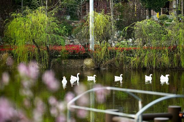 木兰花乡以“乡村游”为主题,打造出365天皆可观赏的花卉世界,三大主题花海,让游客一览繁花似锦的绝妙盛景。乘上小火车,穿行花海。精彩纷呈的舞狮表演,现场气氛欢快喜庆。来自彩云之南的演艺团队,给木兰花乡又增添了几分民族风情。