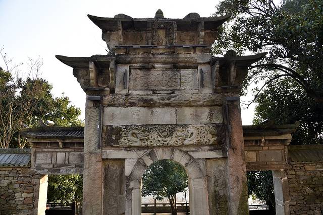 木兰山上有一座木兰将军坊,上面雕刻的“二龙戏珠”、“双凤朝阳”,凤上龙下,不仅工艺精美,更有深刻的寓意。正面的“忠孝勇节”清晰可见,为木兰精神做了简洁精辟的概括。后面的“唐木兰将军坊”更为黄陂作为木兰故里立下了千年铁证。石坊后面的木兰殿始建于唐代,明万历年间重修,殿内供奉三尊木兰将军像,分别穿着官袍、将军、仕女服装。
