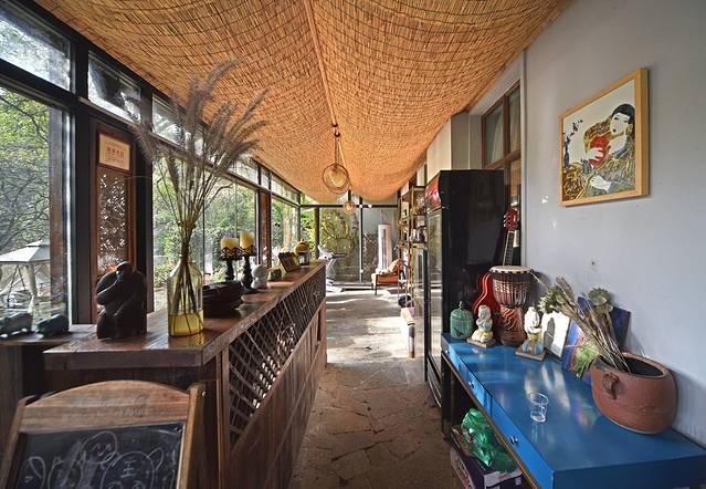 青曦·望云是民宿主理人鲁青在武汉开的第二家民宿,意图把丽江的美好带回武汉,让都市里的人们不用去远方也能拥有异乡的旅行体验。院子中间是一栋二层小楼,墙上爬着藤蔓,仿佛贴上了一层纯自然的壁纸。玻璃墙里明亮的走廊布置得古朴典雅,坐在舒服的沙发上,沏上一壶清茶,享受满园春光秋色,好不惬意。