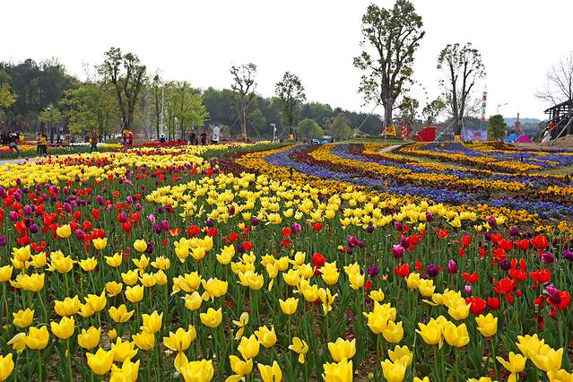木兰花乡位于黄陂区姚家集杜堂村葛家湾,占地面积7000亩,距武汉市区约66公里。清明节前后,正是花海最美的季节。油菜花、郁金香竞相开放,色彩缤纷,花乡成了名副其实花的海洋。