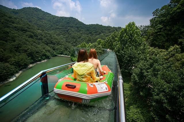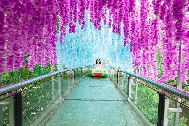 和黄鹤楼、东湖一样,木兰天池也是AAAAA级景区,在滑草、滑索、玻璃漂流、游船、喊泉等游乐项目的基础上,木兰天池又新增了迷雾森林、彩虹阶梯、格桑花海、紫藤秋千等项目,都是拍照非常好看的网红打卡地。