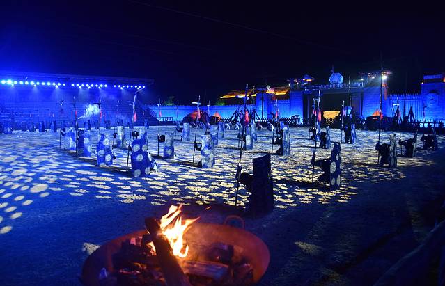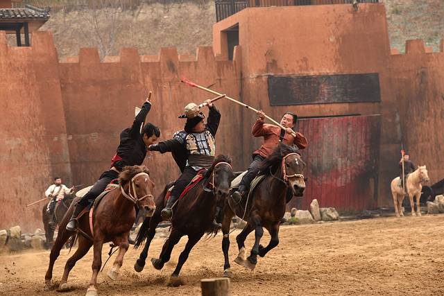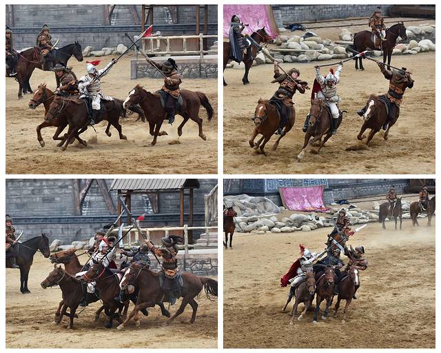 到木兰草原一定要看一场大型实景演出《云中战歌》。演出情景再现了木兰从军的故事,从2018年正月开始以来,一直是木兰草原最受游客欢迎的项目。《云中战歌》先后斥资亿元,由中国山水实景演出创始人、著名导演、国家一级编剧梅帅元先生执导,服装、道具、音乐均由国内著名的专业团队打造。2019年来到木兰草原时曾经看过一次下午场,2020年演出因为疫情暂停,经过一年多的沉淀和酝酿,《云中战歌》涅槃重生,投资千万华丽升级,不仅继续了之前的精彩,2021年清明节开始新推出了夜场,在灯光的渲染下视觉效果更加震撼,给观众奉献了一场精彩绝伦的视听盛宴,让英雄的故事更生动感人。
