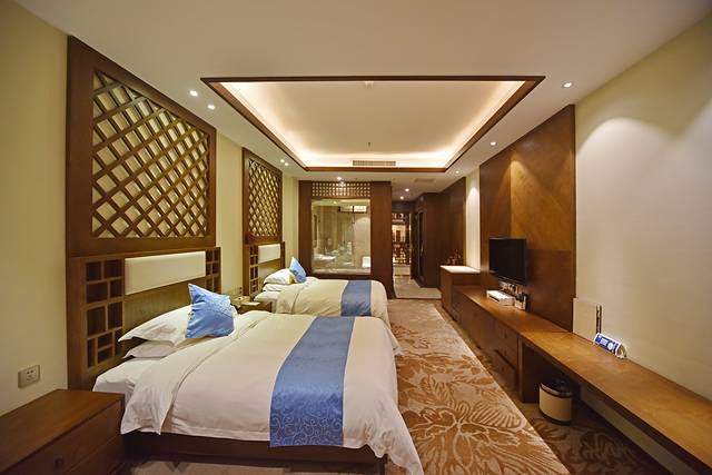 武汉木兰水镇大饭店就在景区旁边,从客房窗户就能俯瞰景区一角。酒店有棋牌室、健身房、休闲中心,同时容纳800人的大宴会厅以及400人的小宴会厅,酒店占地近8000平方米,建筑面积30000平方米。是黄陂区集商务住宿、会议旅游、休闲度假、餐饮娱乐于一体的综合性大酒店。配有1400平方米的多功能厅、100人的自助餐厅,600平方米的空中花园,地面、地下停车位共计240个。客房设施齐全,入住舒适,酒店餐厅的美食美观又美味,饱饱吃一顿,美美的睡一觉,继续军事主题公园的体验。