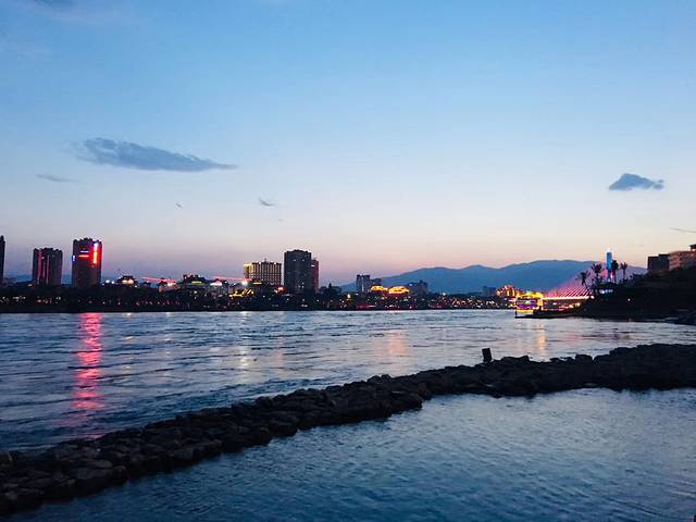 夜景实在是美,我们随意买了一些吃的,就坐在江边的台阶上吹着从澜沧江上飘来的风,听着它的水流声,竟然在聊着电影《湄公河行动》,哈哈哈