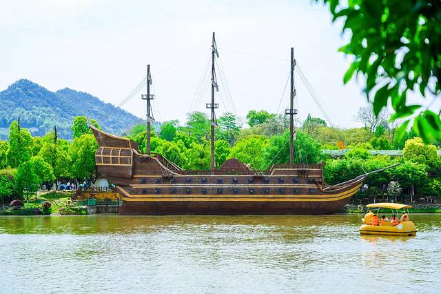 走进水上乐园,一艘造型复古的大木船停靠在灵峰湖畔,这是“嘉乐比号”,船身长30米,从外观即可感受到这艘木船的神秘酷炫,而走进船中更是给你惊险刺激的体验。