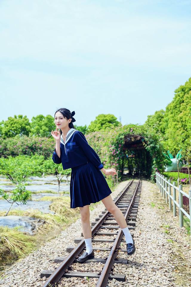 当然,小火车道也是拍唯美人像照片的绝佳之地,身穿JK服的小姐姐站在小轨道上,随手一拍就是一张唯美小清新的照片。