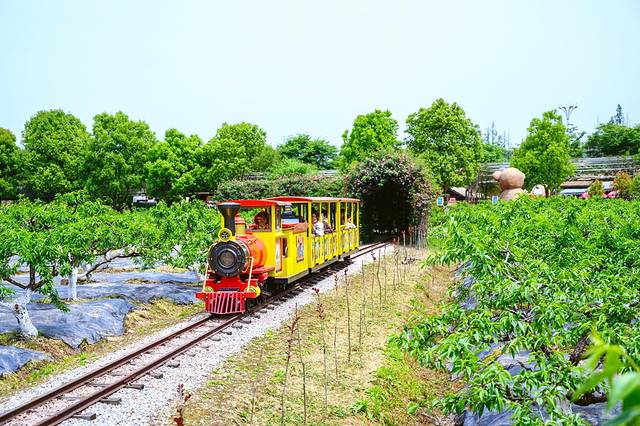 田园嘉乐比乐园拥有多达500余亩的果园,蒸汽小火车行驶的路线是在一片桃园中,待桃子成熟的季节,果树飘香萦绕在身体四周。