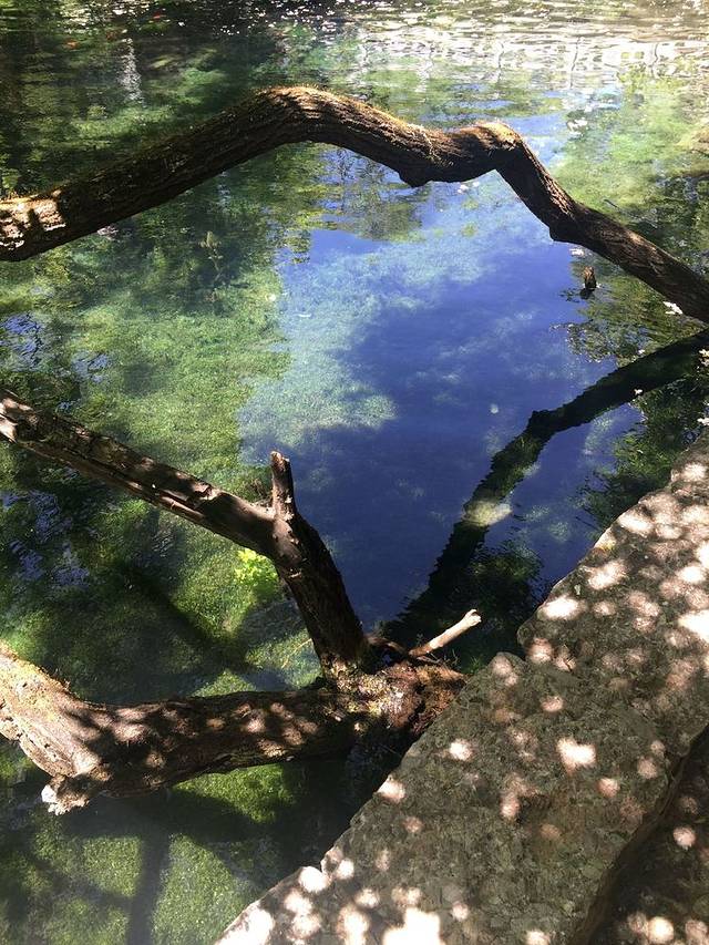 我这日就坐在九鼎龙潭水边,看着书,然后看河水发呆,感受太阳从东方慢慢的、温柔的向西方移动,心静静的漂在水面上,好像跟个纸片一样轻盈
