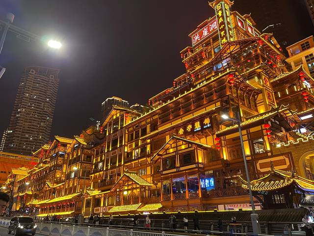 四月份的重庆比想象中的冷一点,需要长袖卫衣加长袖外套,带的衣服有点薄,于是今天逛了一天街。晚上来到了洪崖洞看夜景,确实很好看,但是看到在马路中间照相的小姐姐还是觉得要注意安全哦~