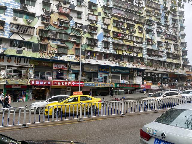 然后走到了交通茶馆和涂鸦一条街。茶馆人非常多,没有位置,只是进去转了转就离开了,是想象中的重庆市井的味道。