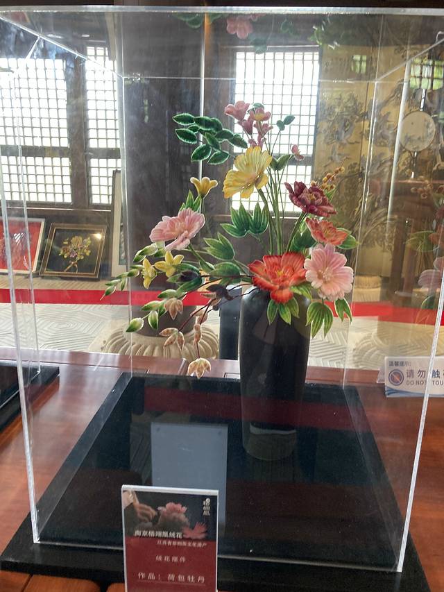 在南京园里,有很多非遗,比如绒花首饰,《延禧攻略》这部戏带火的,第一次近距离看绒花盆景,真的以假乱真,精致好看。