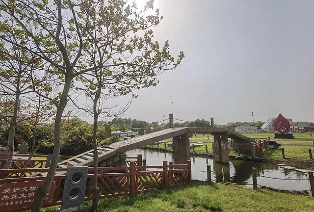 海湾国际风筝放飞场还有两处迁移过来的老古董:一座石桥和一座石牌坊,它们可是“奉贤区文物保护点”哦。