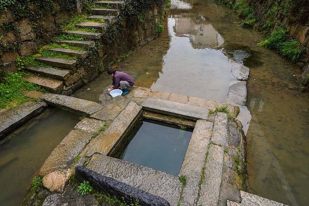 始建于隋末唐初的朱旺村是一座典型的徽派传统村落,九口形状各异的水井卧于河中,可以算是朱旺村在皖南古村中独有的一道风景线。