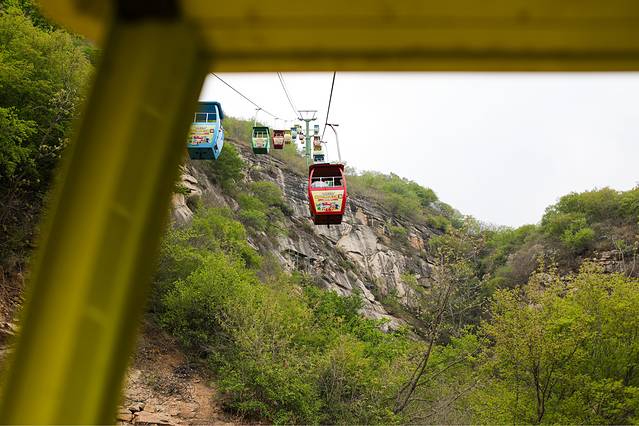 首先进入清凉谷之后大家会乘坐小缆车一路到达山顶,乘坐缆车的路上会看到山间的美景,葱葱郁郁,心旷神怡