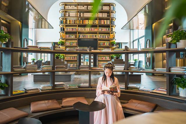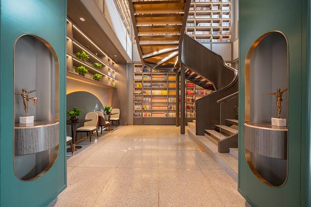 想要来点文艺范的,就去街区的城市书屋转一转。腹有诗书气自华,设计超好看的城市书屋,于每一个细节间布置,都带有文艺气质,超极出片的旋转楼梯、中庭嵌入式卡座、看上去可以通天的书架,一卷卷、一本本散发油墨香的书籍,看似随意摆放的小物件,不由得让人想要亲近、沉浸其中。闲暇时光,捧一卷爱书,抿一口咖啡,岁月静好,时光悠长。