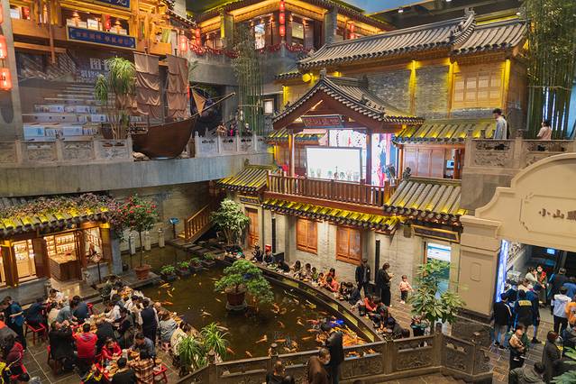 随意的买几样中意的唐山的特色小吃吧,坐在错落有致的方桌旁,方桌旁“滦河”水缓缓流淌,金色的锦鲤游得欢畅。方桌对面,“梨园盛世”的舞台上吱吱呀呀的唱起了评剧,一边吃着美食、一边看着演出,简直就是美味加倍啊。