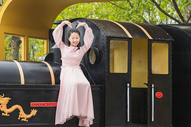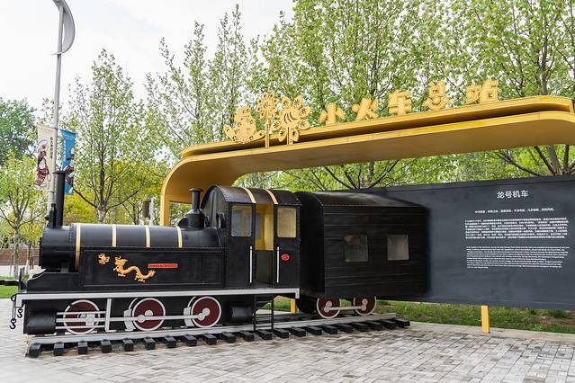 进入皮影主题乐园,位于乐园的右手侧小火车总站,立有“龙号机车”等比模型,在等候小火车的同时,可以让孩子在这里拍拍照,你也可以告诉孩子关于“龙号机车”的故事。