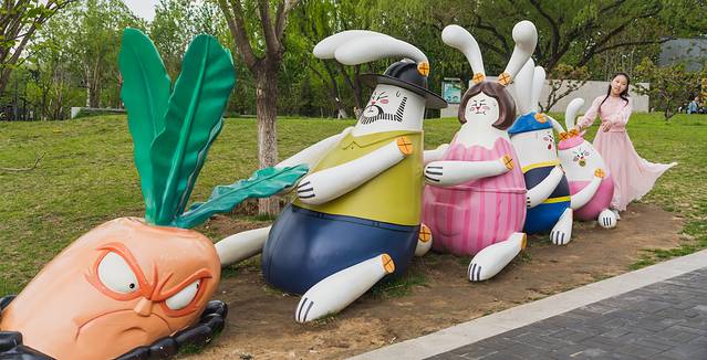 人们对于柔软的事物总是无法拒绝,主题乐园的卡通形象皮影兔,艺术来源于唐山传统皮影:爸爸唐皮儿,妈妈唐影儿,哥哥唐心儿和妹妹唐宝儿,和乐融融的一家,不同的场景分布于乐园各处。人们走进这里,就如同在黑森林里被施用了黑魔法,化身为“糖墩儿”,脸庞洋溢着欢笑,里里外外都那么甜。