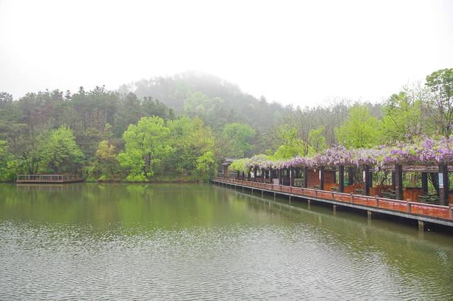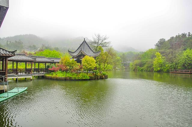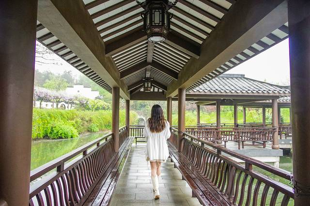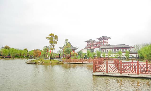 小桥流水人家,木栈道亭台楼阁显得很精致,再加上杨柳依依,一派江南水乡的风情在这里展示的淋漓尽致。