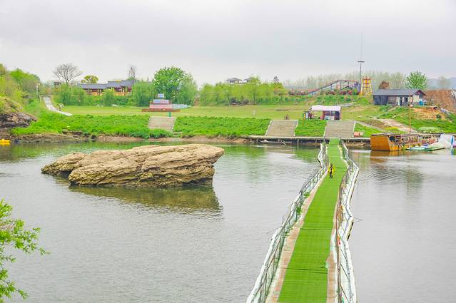 游览过河东,经过浮桥就到了河西。河西是军事体验区域,这里有很多体验项目。
