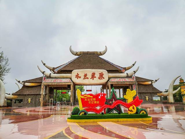 来到木兰草原,首先看到的是景区的标志性建筑——浮雕门楼,它的设计理念带有鲜明的草原特色,比如骑马的蒙古男儿和浮雕上威武雄壮的博克手等等,都凸显了草原文化粗犷的魅力。
