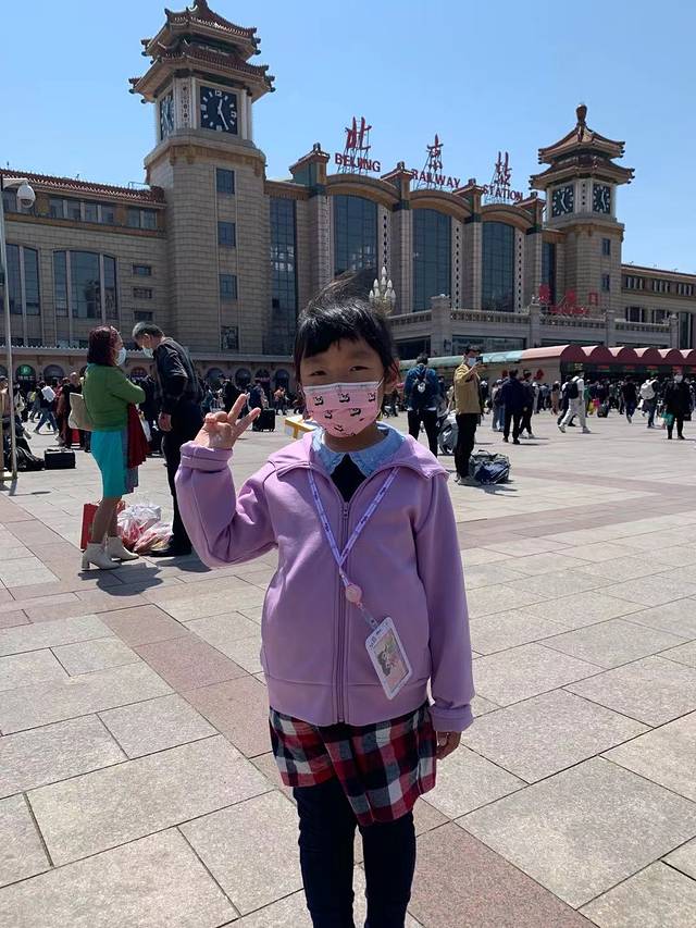 下了火车就在北京站留了个影,这个背景不少小朋友都在这里照过照片吧,给孩子留个纪念,以后她也会想起来的。