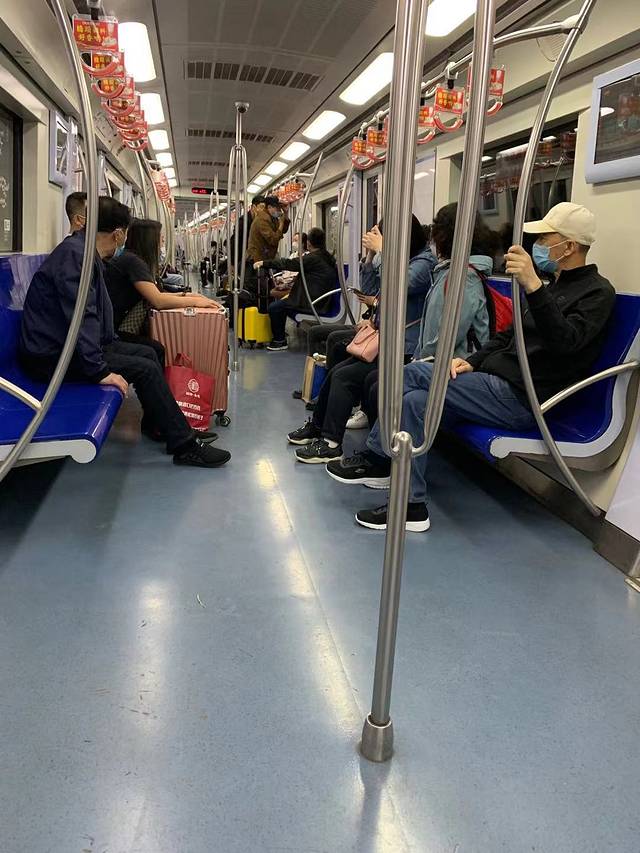 上了地铁,还有点纳闷儿,怎么人这么少呢,第一次上了北京地铁还有位置可以做。