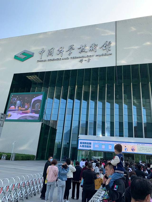第二天吃完早饭,就步行前往科技馆,步行十分钟就到了,一如既往的排队。排队所需的购买票的凭证(网站截图或者购买后发的短信),北京健康宝小程序,身份证。