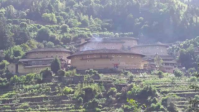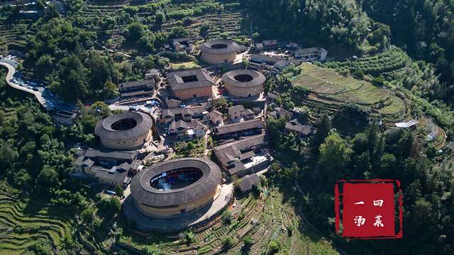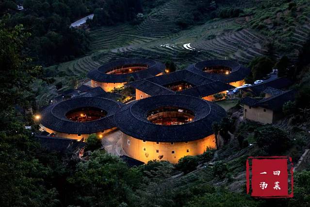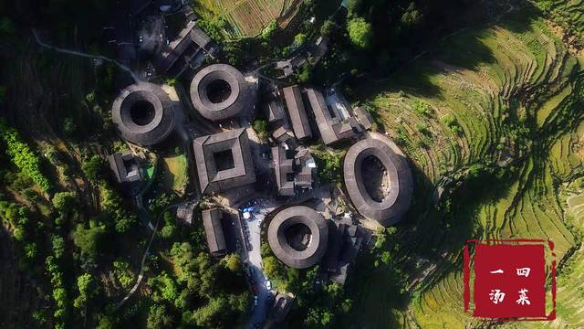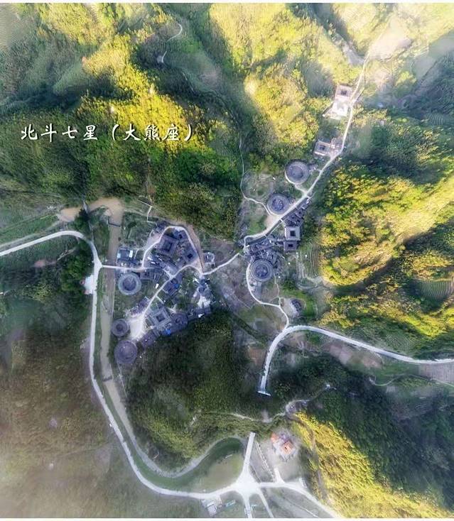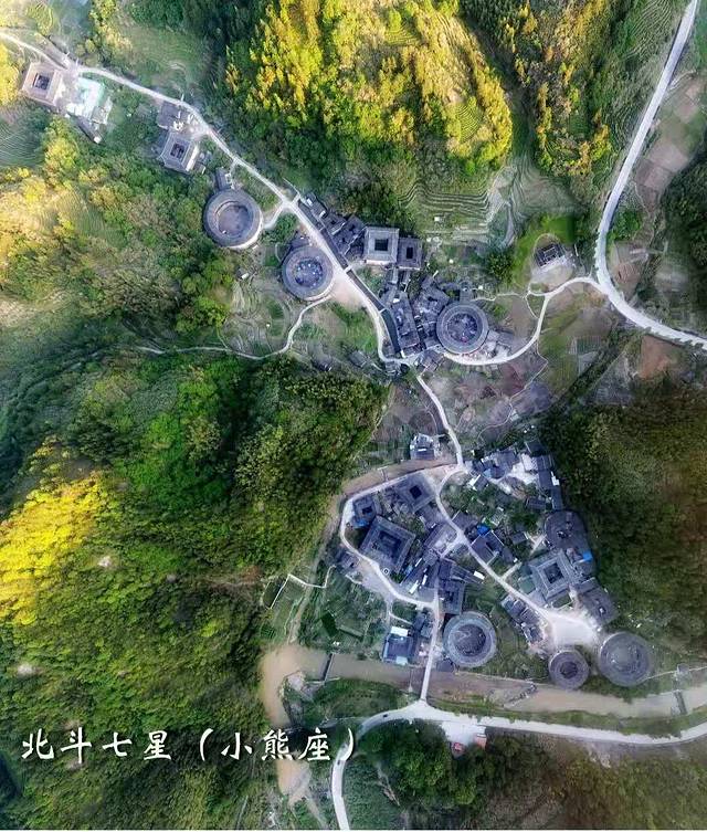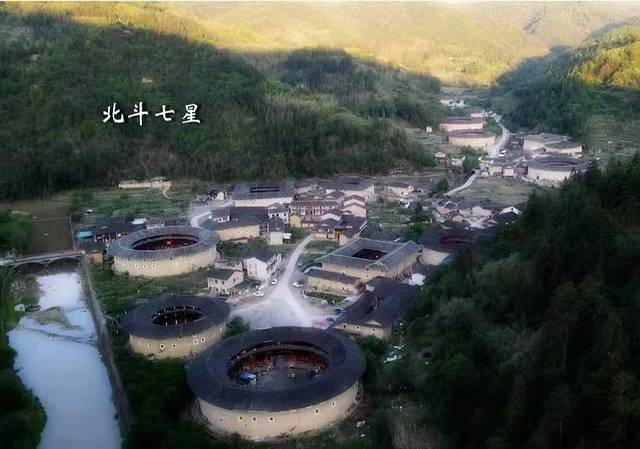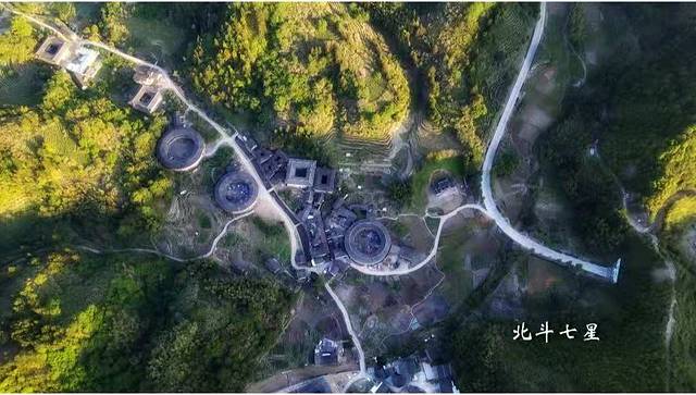 河坑土楼群14座土楼呈现出了形似双北斗七星阵的奇观,两阵相辅相成,方圆相配阴阳相合, 有“仙山楼阁”、“北斗七星”之称。