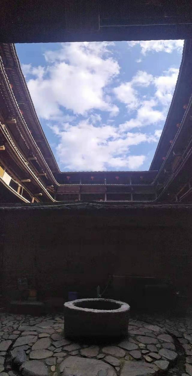 和贵楼是神奇楼,在沼泽地上起起来的,老楼是新楼的地基。里面有二口井,一口浑水一口清水。这个大乌龟在清水井里,我拍井的时候,它就游上来了。