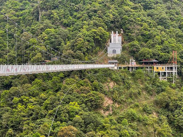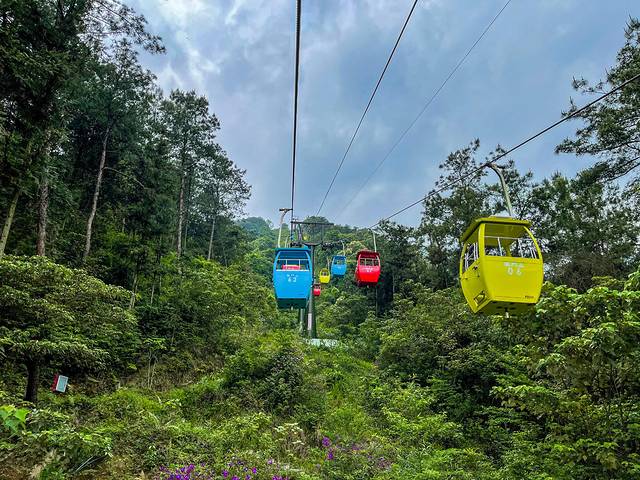 无论什么时候前往,还没有走到景区就可以看到远处云雾笼罩的自然美景了,尤其在乘坐糖果缆车一路向山顶进发的时候,感觉自己渐渐地走进了云端里,缆车外面一片郁郁葱葱的景色,“天然森林氧吧”的美誉真是名不虚传,走出缆车便可以登上祥云楼登高远望,一览云门山下的美景!缆车既是代步工具也是一个一家人共度温馨时光的空间,快点享受安静的观景时光吧!