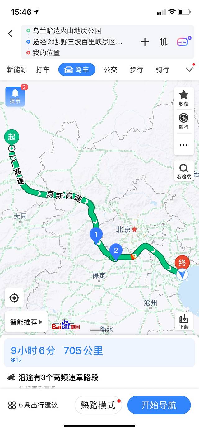 第四天在大草原上的凌晨本应能看到清晰的银河,可惜太困了起不来,只能在睡前感叹下清澈的星空。捡玛瑙没捡够于是早晨又去了八号火山脚下再次搜寻,结果被吹成了海澜之家同款造型,看着天气不对赶忙上车跑路,正和火山告别之际竟然没过几分钟就见识到了说来就来的暴风雪和沙尘暴。刚刚冒青的草和悠闲的牛羊真可怜,入春失败。中午离开乌兰察布,延京藏再次扎回太行山脉,从张家口南拐途经了野三坡。如果不是五一小长假期间的话就住在野三坡玩儿一圈了,无奈这个景区人太多,我们选择不进,住在了旁边县城的圣林国际酒店,人少且舒适。穿越百里峡,山景的确美。