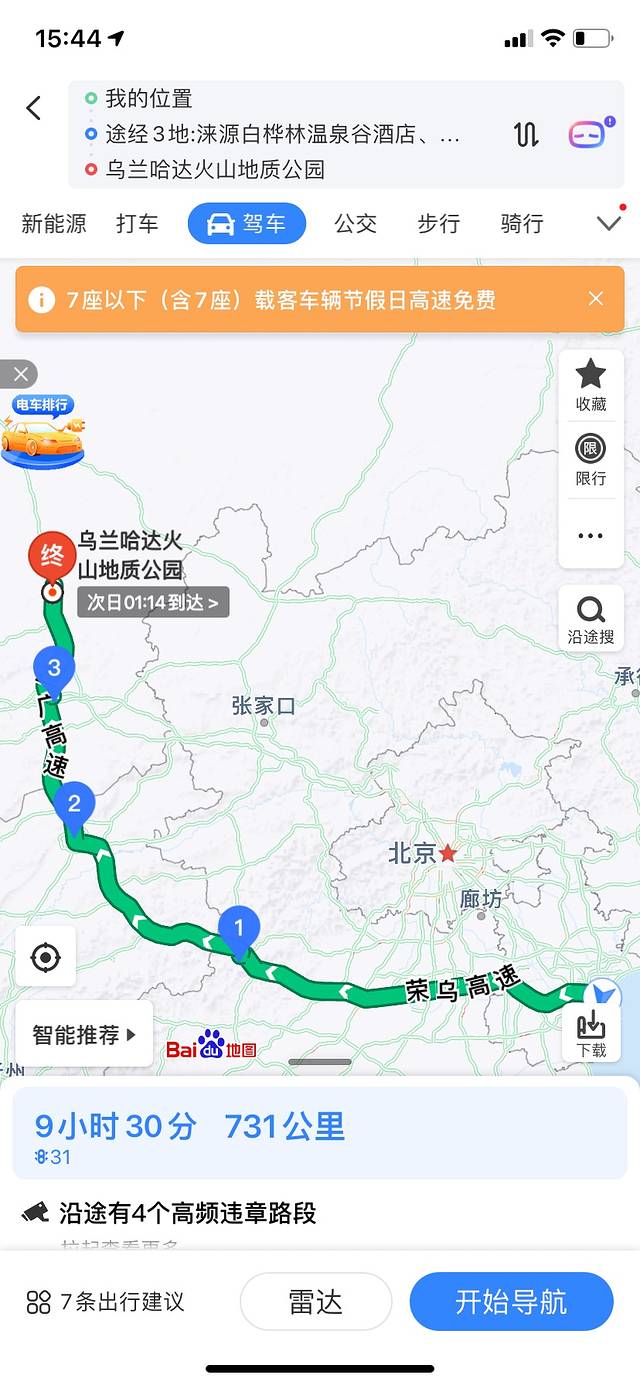 第一天小区大门右拐,从开发区走津滨、宁静转荣乌,路过一望无际脚手架的雄安新区,直接扎进太行山脉的白石山脚下。我们没打算爬白石山所以没早起出发,过了中午才到的,住在了白桦林温泉谷酒店,泡澡游泳吃驴肉,享受山景风光。