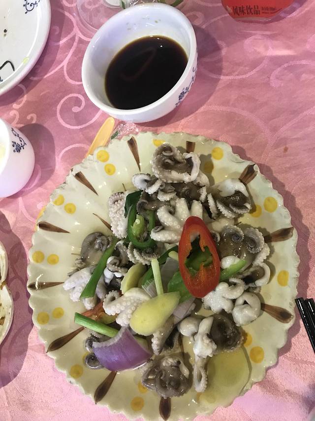 潮发海鲜大排档,点了炒牛河,烤生蚝,白灼八爪鱼,个人还是更爱吃炒牛河,挺香的,肉也挺嫩的,烤生蚝蒜蓉还挺好吃的,生蚝就吃不出什么鲜甜的味道了,八爪鱼做的挺脆的,但是碗汁里加了芥末,不喜欢,白嘴吃的,没沾酱汁,没有什么味道,只有脆脆的口感还不错
