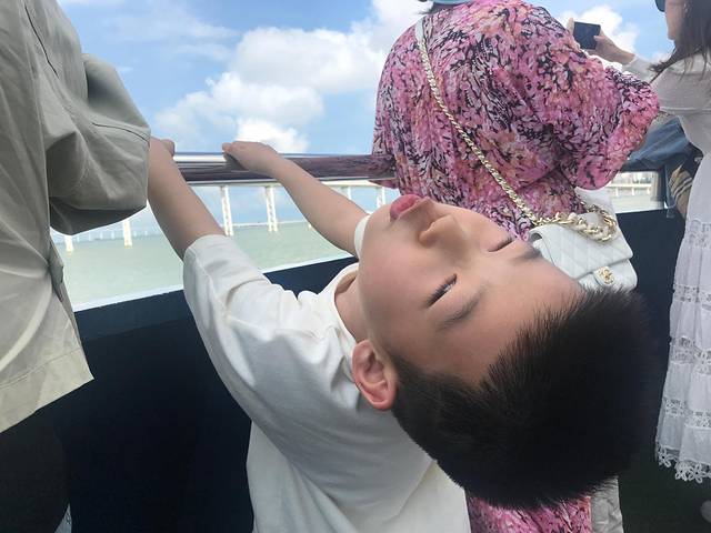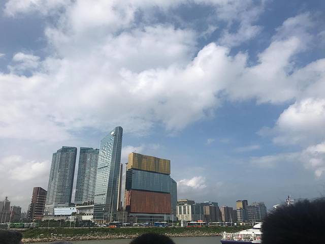 珠港澳海上游,可以远远的看到澳门跟珠港澳大桥