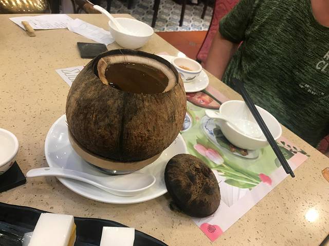 原只椰子竹丝鸡,清甜的椰子汁配乌骨鸡,甜而不腻,好喝