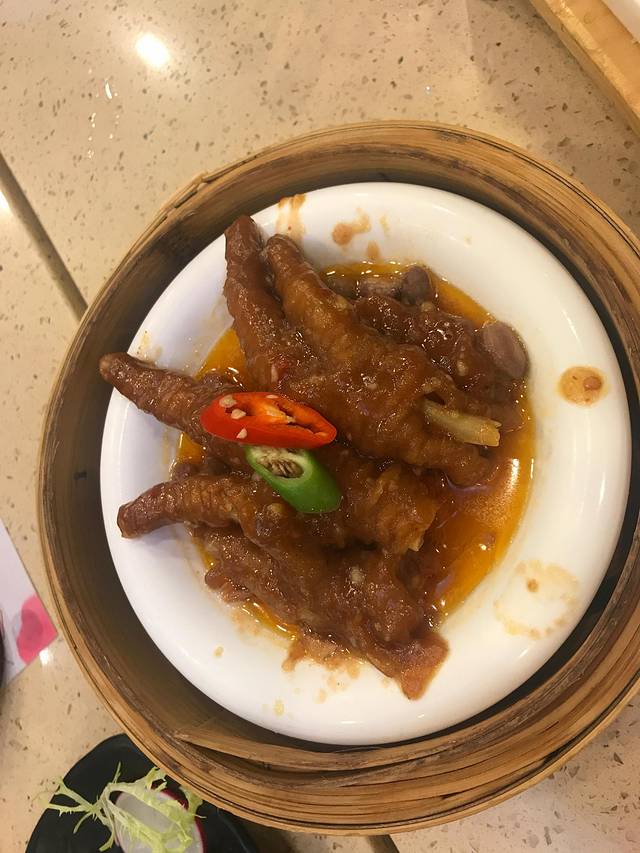 豉汁蒸凤爪,特别软烂,微微有一点辣,好吃,我自己承包了这一盘