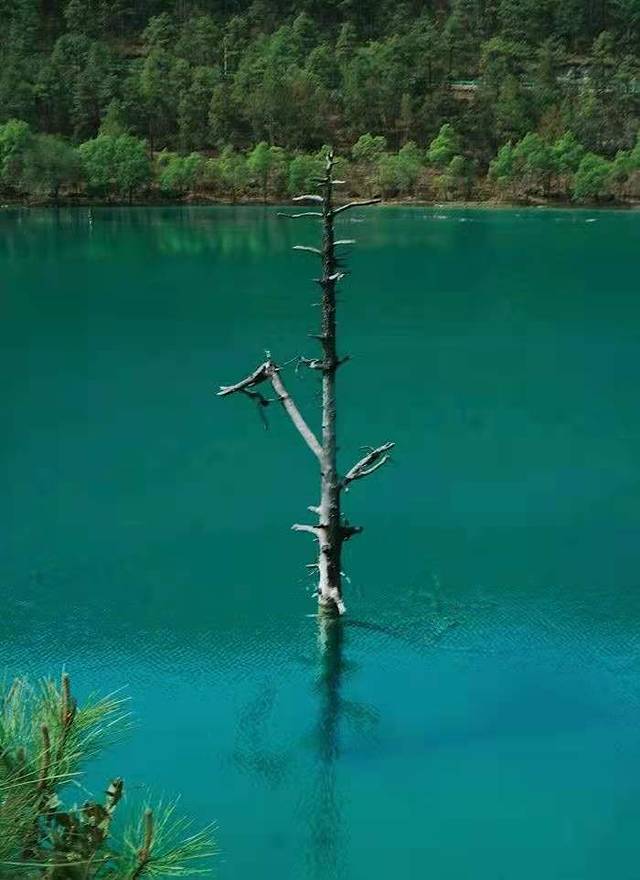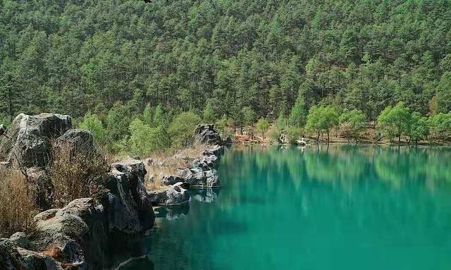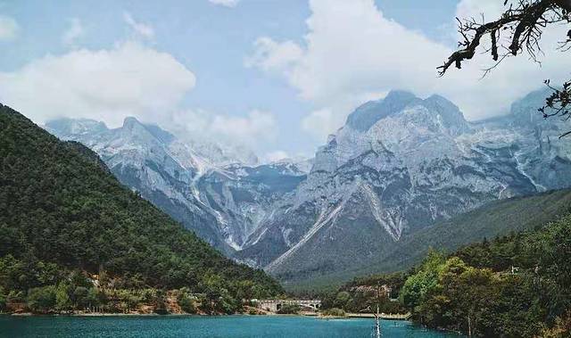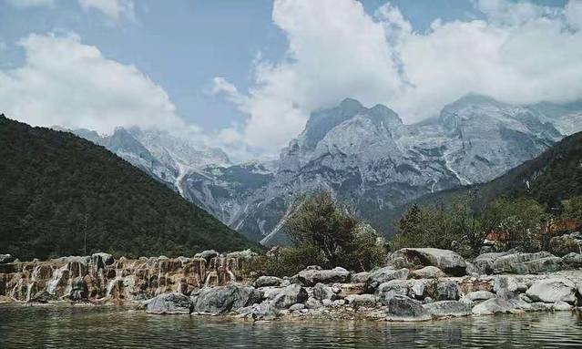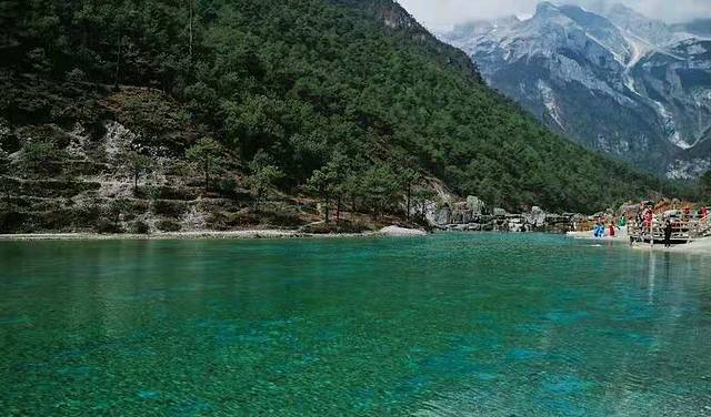 蓝月湖:大概1小时可以走完一条路线越往后人越少,风景越佳。湖面呈现蓝绿色的水面,近处水清澈见底。雪山做背景拍出来的照片都是屏保。